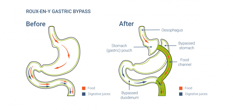 Both work by re-directing the food you eat so that it skips the first 1-2 metres of the digestive tract (don’t worry, there is still plenty left!). This leaves less time for you to absorb calories, but most importantly it makes your body increase production of natural hormones that suppress your appetite, and reduce the output of different hormones that make you feel hungry. Portion size is also reduced as the stomach is made smaller during the surgery.